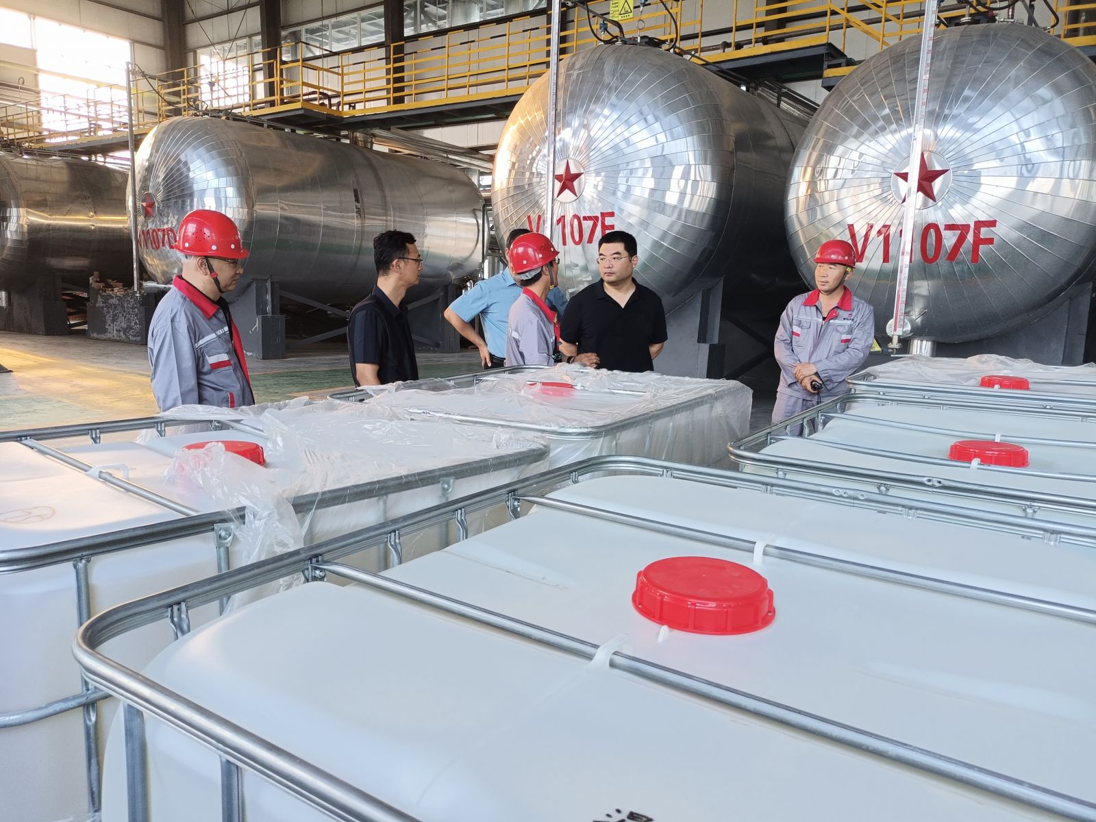 8月18日,鄄城縣政府常委副縣長黃金果一行在富達生物公司常務副總經理彭軍,行政副總經理李泉、安全總監周鳴的陪同下視察公司生產、經營工作,先后到一車間、二車間、三車間進行實地調研。