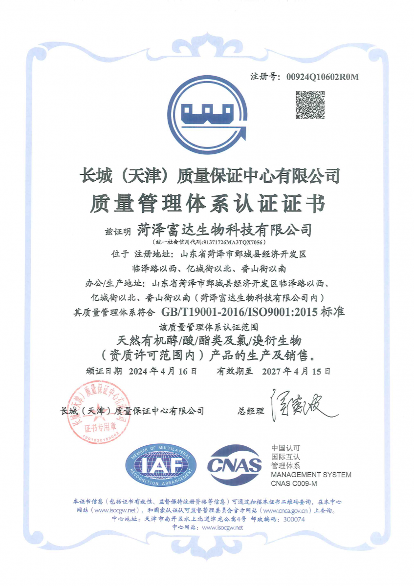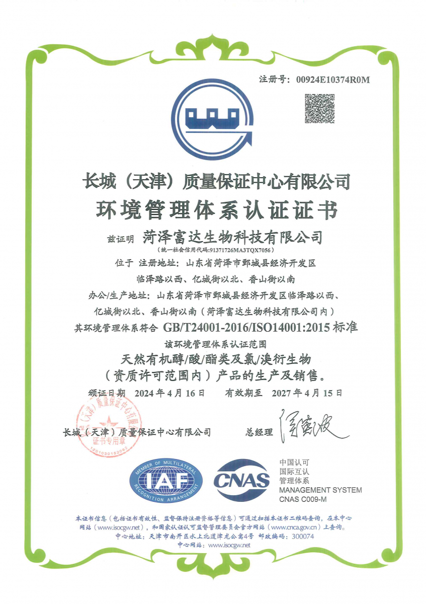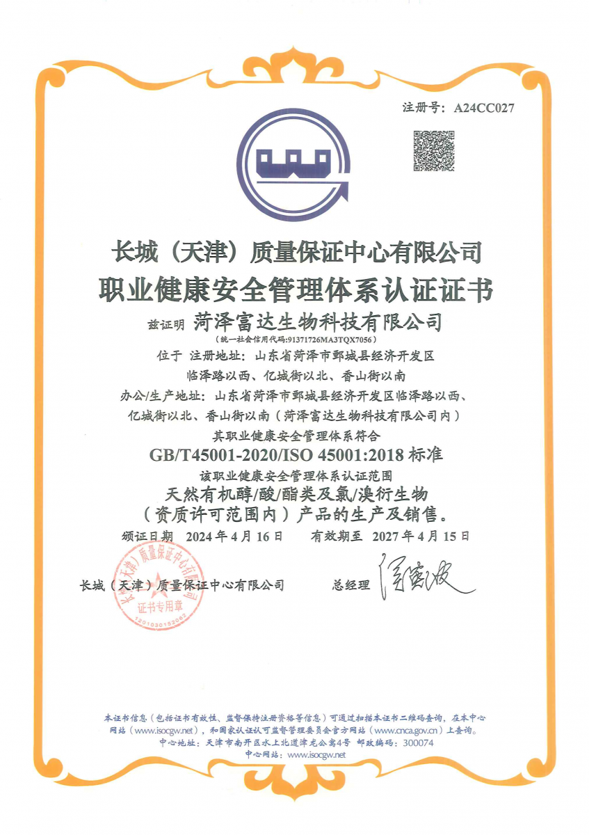 熱烈慶祝菏澤富達(dá)生物科技有限公司取得質(zhì)量/環(huán)境/職業(yè)健康安全三標(biāo)體系證書(shū)